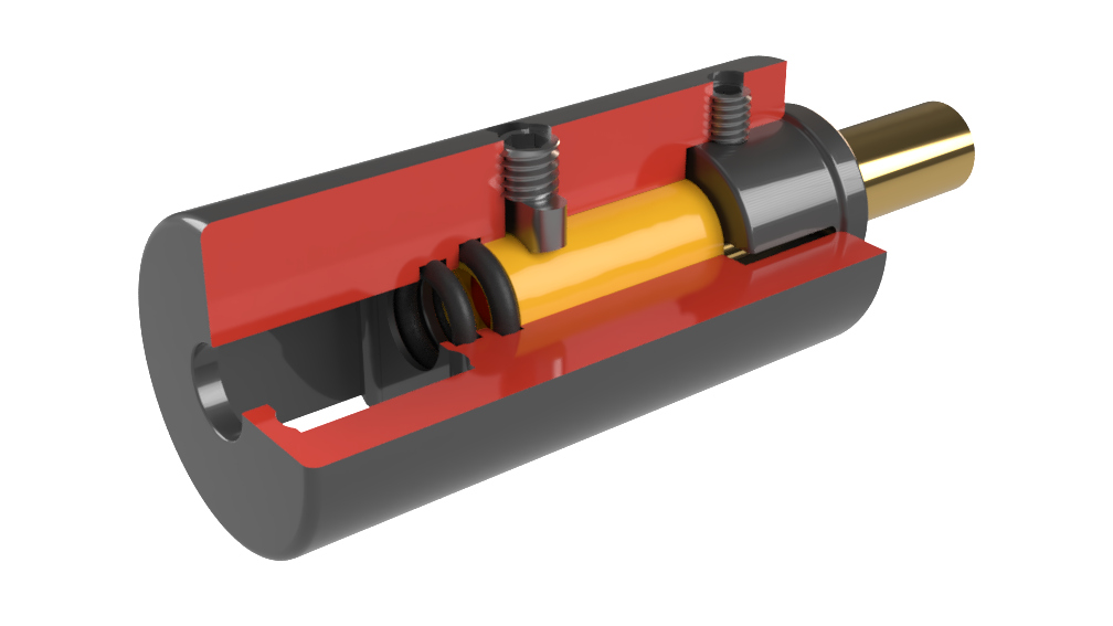 The unit is made in one piece. Inside are 2 standard size O rings. This prevents air from escaping in either direction. The barrel is held in place with precision machined plastic bushing.